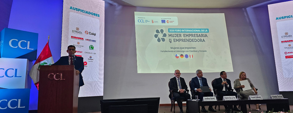 Lima, 13 de marzo de 2025 – En el marco del XXII Foro Internacional de la Mujer Empresaria y Emprendedora, organizado por la Cámara de Comercio de Lima (CCL), el proyecto [Ecosistema]³ participó activamente con una ponencia a cargo de Beate Heimberger, directora del proyecto y representante de la Federación Alemana de Comercio Mayorista, Exterior y de Servicios (BGA).