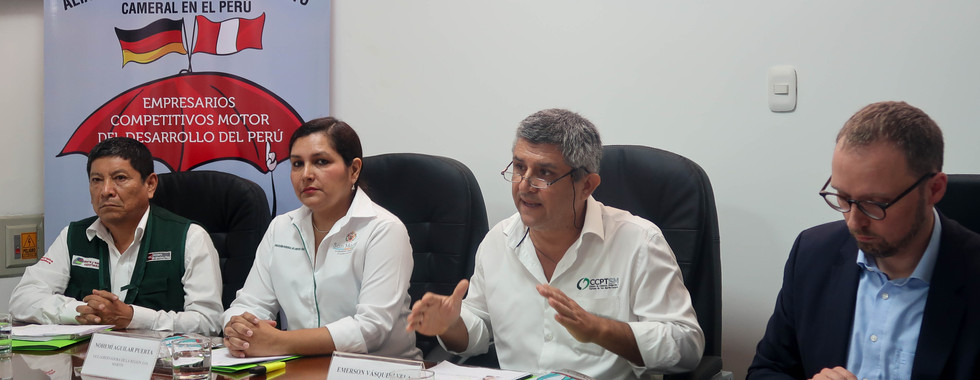 Continuando con las actividades, se llevó a cabo una conferencia de prensa en la que se anunció la importancia de la articulación público-privada para el desarrollo del subsector cacao. Participaron en la conferencia: Nohemí Aguilar, vicegobernadora regional de San Martín; Emerson Vásquez, gerente general de la Cámara de Comercio, Producción y Turismo de San Martín - Tarapoto, Javier Arenas, especialista de Sierra y Selva Exportadora y Gregor Wolf, miembro de la dirección general de la Federación Alemana de Mayoristas, Comercio Exterior y Servicios (BGA).